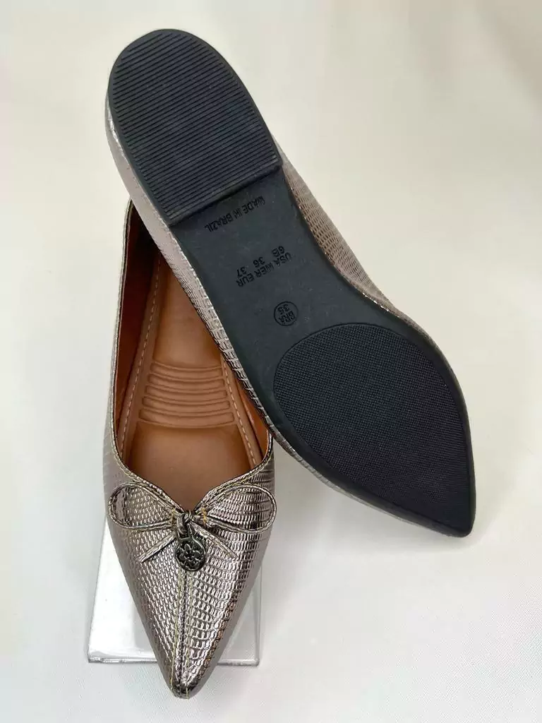 A sapatilha de bico fino é um clássico que proporciona looks formais e casuais, podendo ser combinadas à diferentes peças de roupas, em qualquer estação do ano. Você linda e confortável sempre!